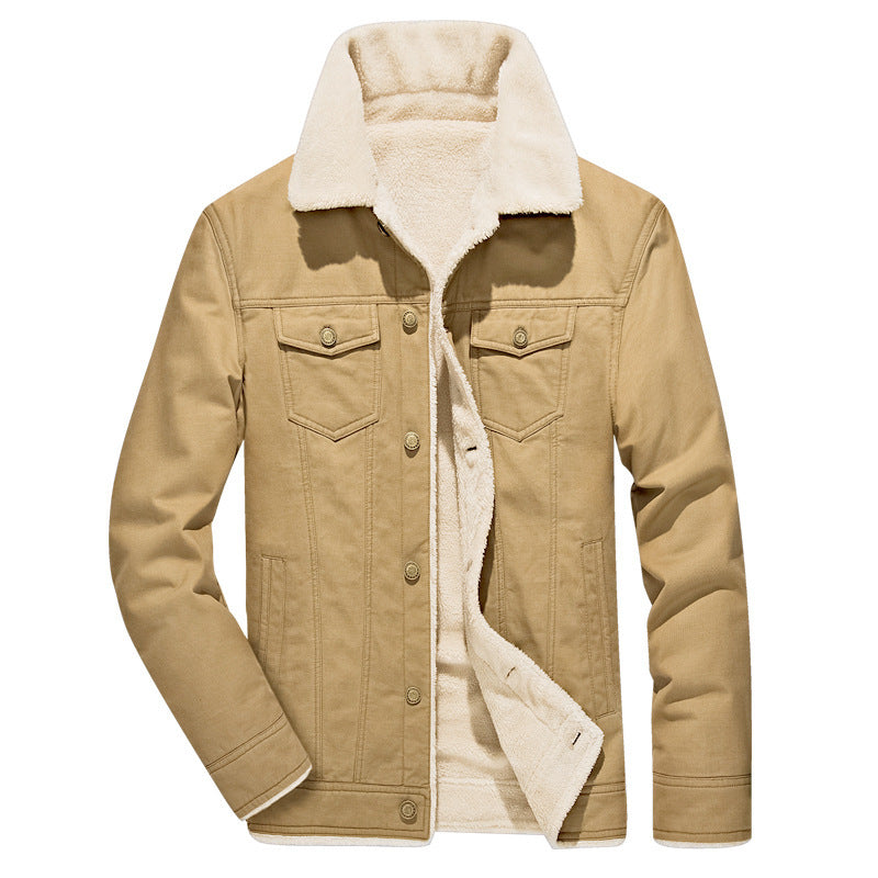 This winter, keep yourself warm and stylish at the same time with this Washed Thick Velvet Jacket. This tough guy jacket is made of cotton and is perfect for layering over your favorite shirts and sweaters. With a military-inspired design, this jacket will give you a sharp look that will turn heads. The washed thick fabric will keep you cozy all winter long, making this jacket a must-have for your cold weather wardrobe. Don't miss out on this great piece - grab yours today!