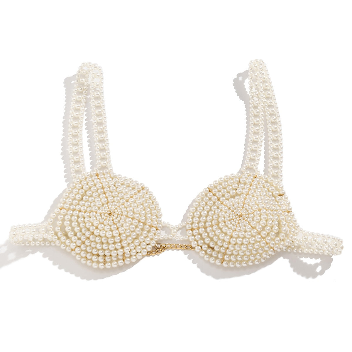 Introducing the White Beaded Pearl Corset Bra! This sexy bra chain is the perfect accessory for any woman who wants to feel luxurious and beautiful. The gorgeous white beads and pearls are carefully handcrafted to create a stunning corset bra that will accentuate your curves and make you feel confident and sexy. The adjustable straps allow you to customize the fit, so you can be sure that it will be comfortable and flattering. Whether you're wearing it for a special occasion or just because, the White Beaded Pearl Corset Bra is sure to make you feel like a goddess.