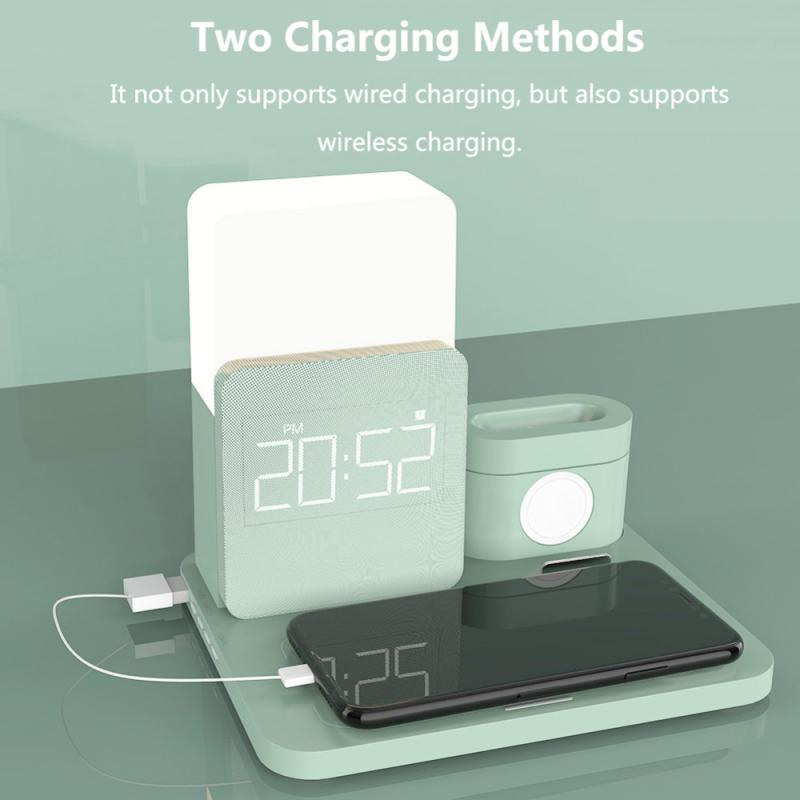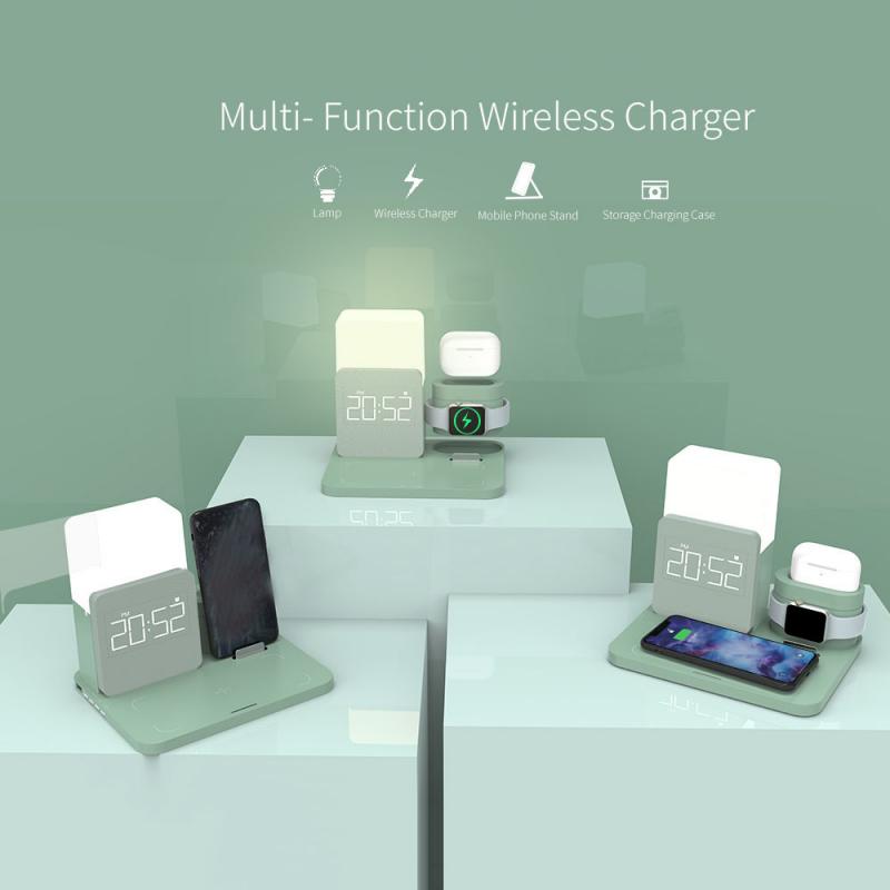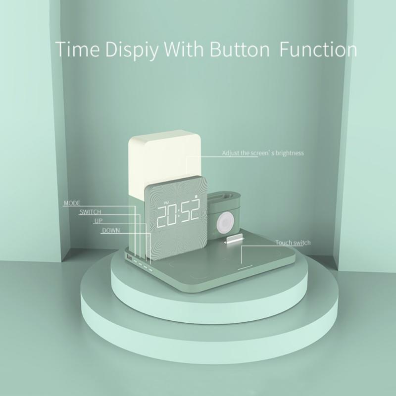 Looking for a night light that also doubles as a wireless charger and alarm clock? Look no further than the Wireless Charging Clock! This innovative device features a split design with a charging storage box for your convenience. The touch button design makes it easy to adjust the screen brightness, while the 3-in-1 functionality means you can charge your iPhone, iWatch, and AirPods all at the same time. Whether you're looking for a night light to help you drift off to sleep or a way to keep your devices charged and organized, the Wireless Charging Clock is perfect for you!