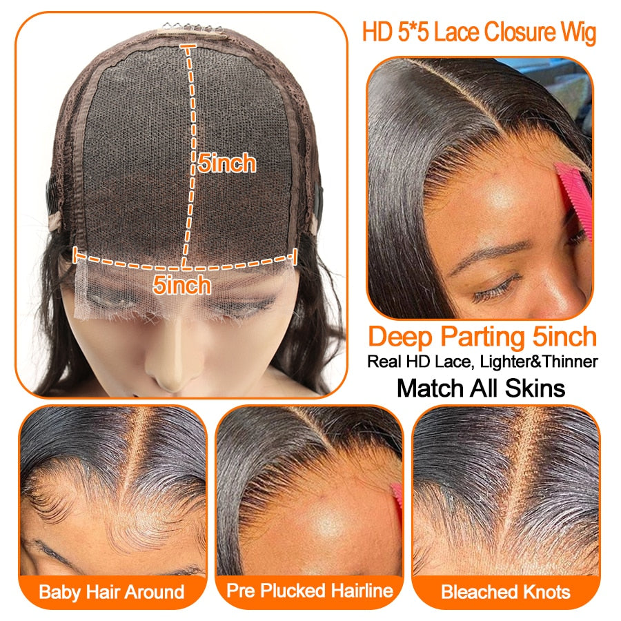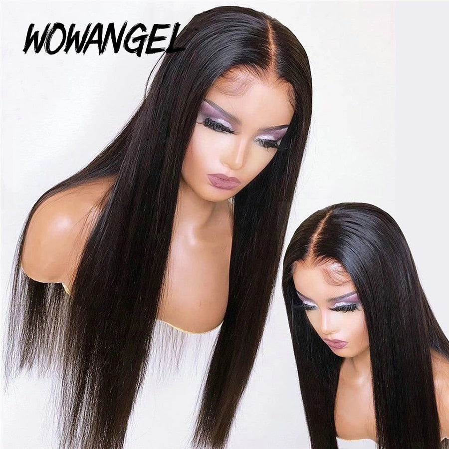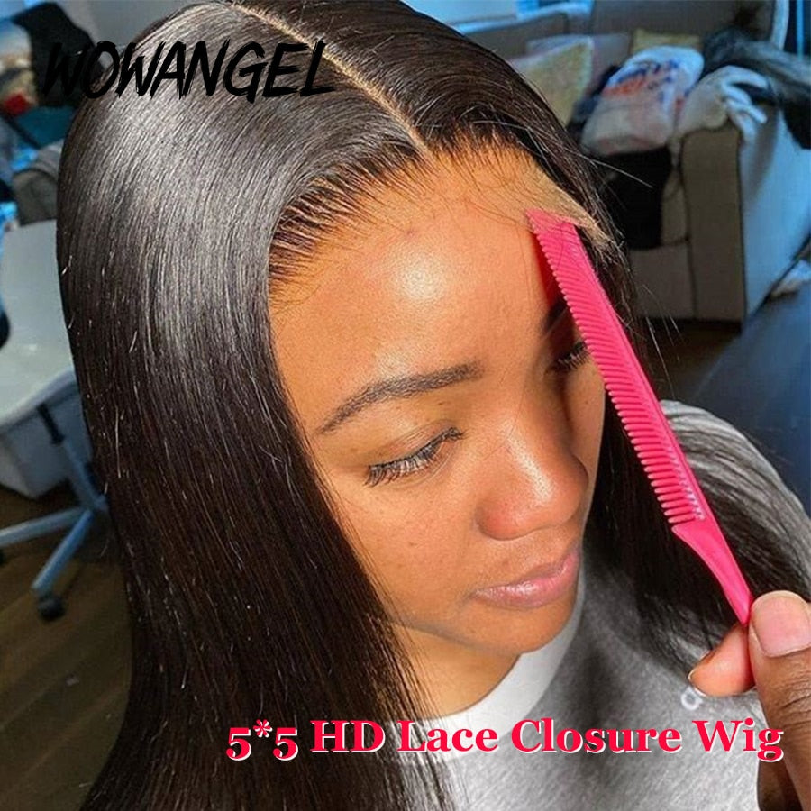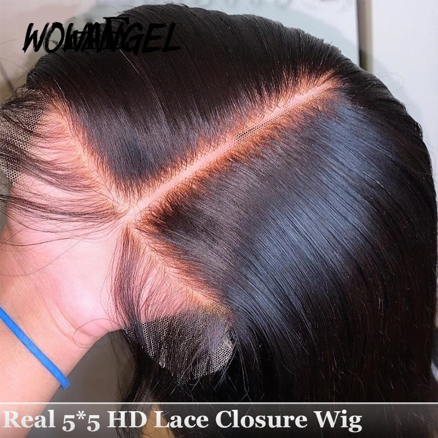 Wow Angel Transparent HD Lace Frontal Wigs Melt Skin 34 Inch Straight Invisible 5X5 Lace Closure Human Hair Wigs Brazilian Hair