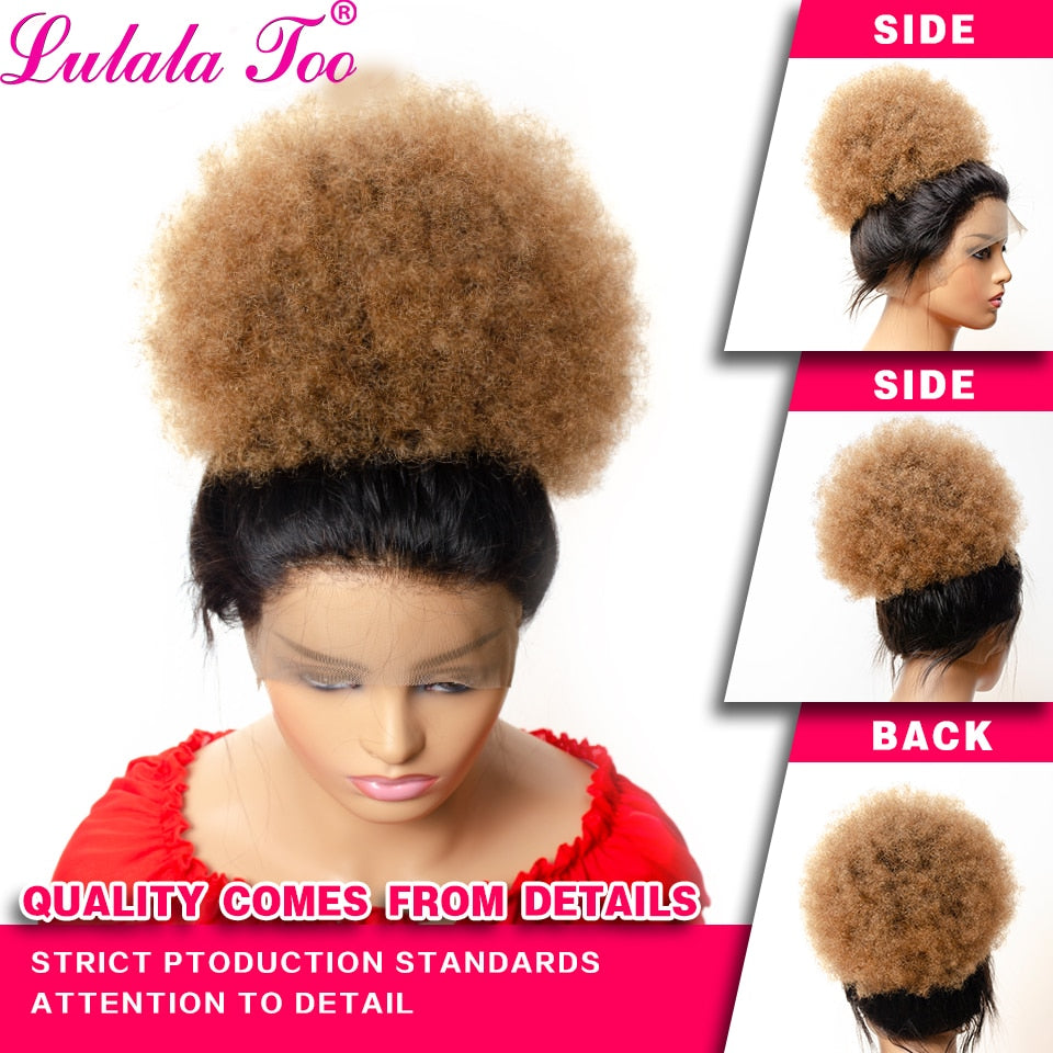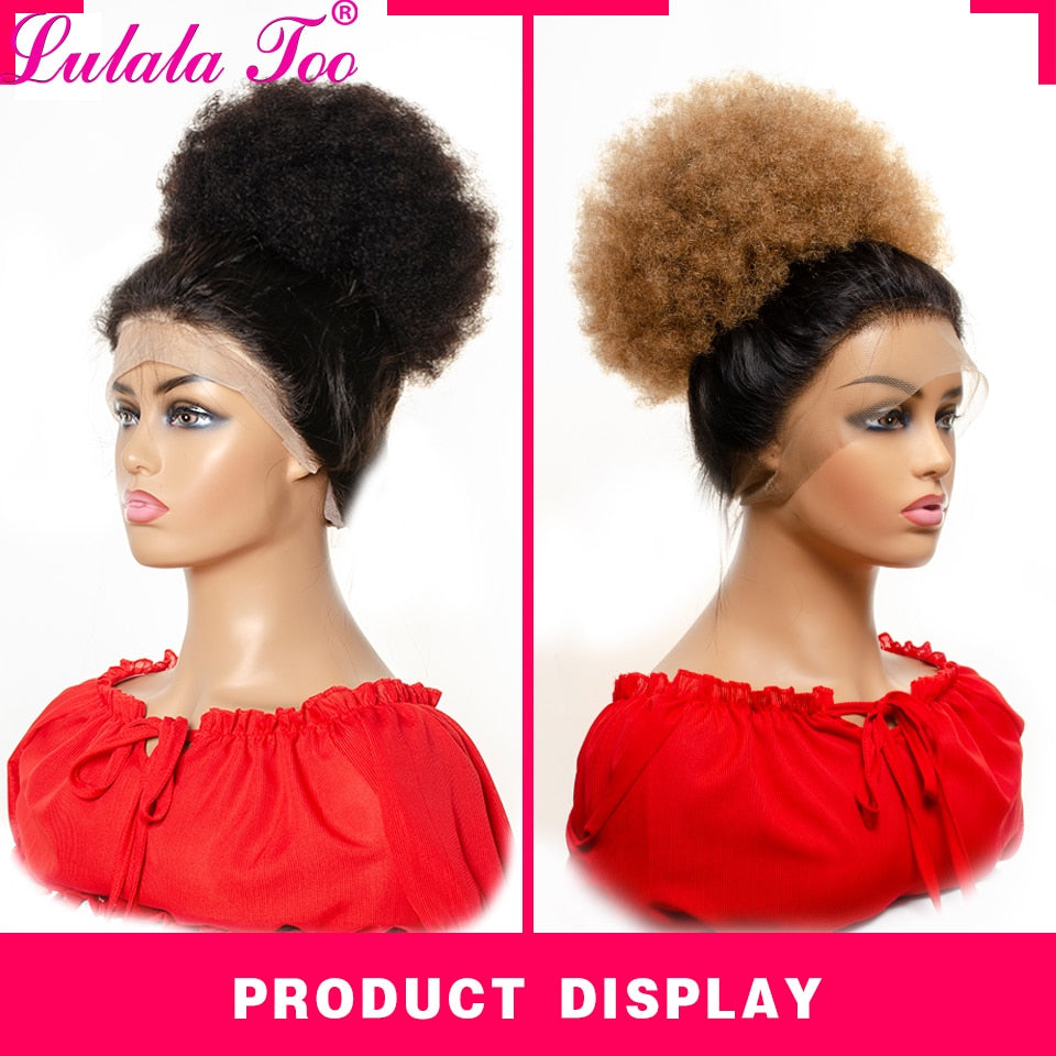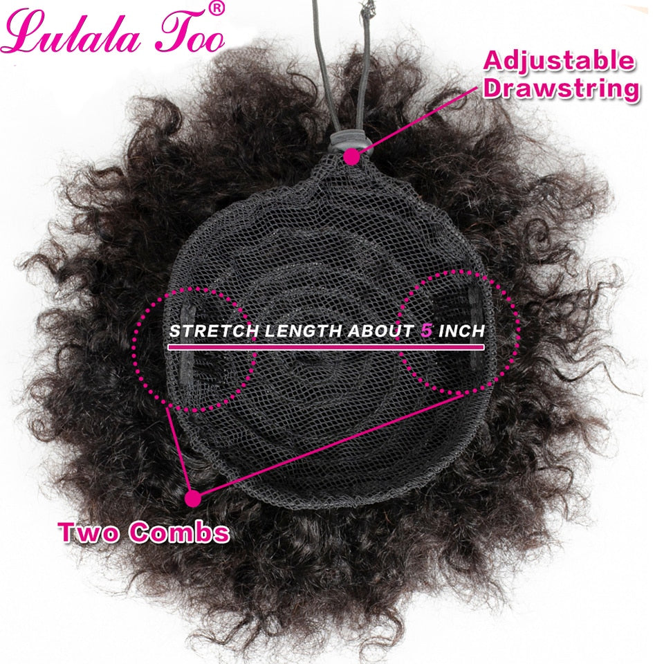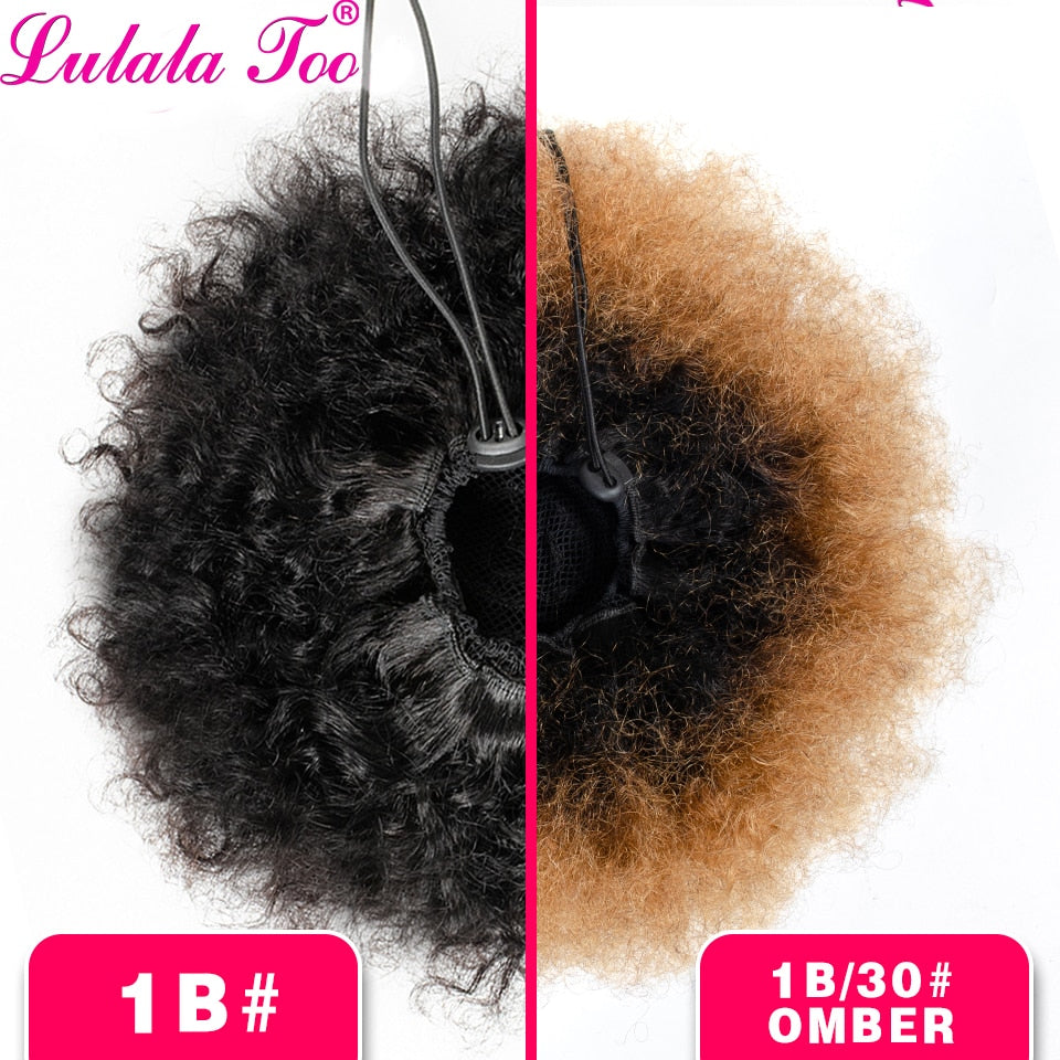 Yepei Afro Drawstring Ponytail Human Hair African Puff Hair Bun Clip In Extensions Kinky Curly Pony tail Remy 8 Inch